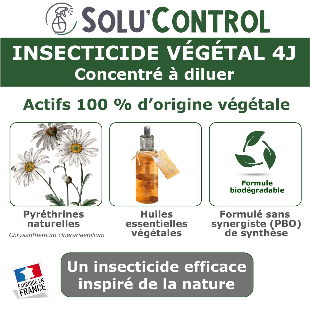 Cet insecticide est formulé pour détruire par contact les insectes volants (moustiques, guêpes, mites, mouches, taons…) et les insectes rampants (fourmis, araignées, puces, blattes, charançons, cafards, cancrelats, pucerons…).Il contient du pyrèthre végétal, une poudre extraite des fleurs séchées de chrysanthème connue pour son effet redoutable sur les insectes. Associé à une huile essentielle bio de citron, il laisse une senteur plus agréable après utilisation.Ce produit s’utilise comme une bombe insecticide classique : appuyer sur la valve et pulvériser directement sur l’insecte ou sur la zone concernée. Il peut être utilisé dans toutes les pièces de l’habitation, mais aussi au bureau ou dans des espaces d’accueil.
